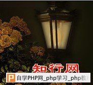 三、新建图层2----选取选框工具,选取圆形选框工具----在灯的中间部位选取圆形并且填充为黄色(因为整幅图的色彩较暗,所以不易用浅黄色~在这里我用了暗一些的桔黄)----填充后,点选上方工具栏的(选择)---羽化----羽化半径为5像素(多少像素因图片的大小而定)---点确定---右击鼠标出现菜单栏---点选反向---然后按Delete删除。