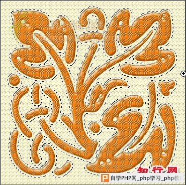 11、载入图层2的选区,然后选择背景副本图层,按Delete键删除选区内的图像,完成后取消选区,使布纹的浮雕效果更明显,隐藏图层2观察效果如图19所示。