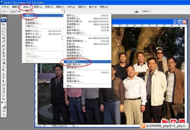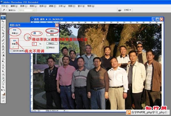 要修整这类照片的方法会很多,我还是借用这幅集体照为例,想谈谈如何使用“阴影/高光”工具来调整的方法及步骤,便于相互学习和交流,欢迎网友们提出意见。