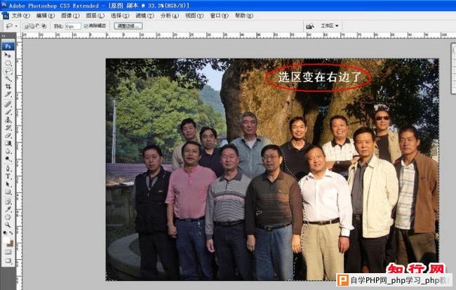 6. 这时选区改变到右面了。如下图: