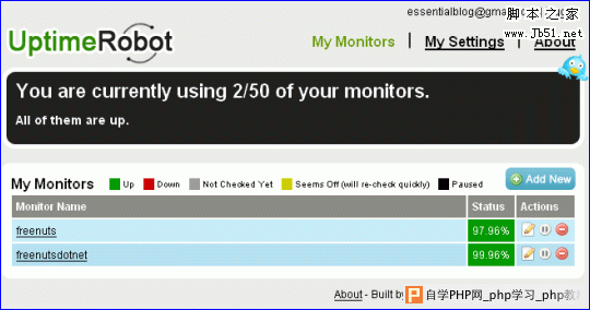 [导读] 关于自动检测网站是否宕机的免费工具,精博之前已经有介绍 11 个了,我自己也只用了大概六七个,本来不打算再尝试新的类似工具了,但是 Uptime Robot 能够免费检测 50 个网站的优势还...