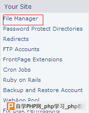 1、登陆LPCP面板,在面板的左侧找到File Manager链接