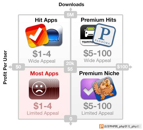 绝大多数应用都失败了。 这个残酷的现实令很多幻想破灭的开发者开始认为,在Apple store中成功就像在淘金热潮中致富一样:你所需要的仅仅是运气。 ![]() “运气论”这种想法是危险的,它就像是用来减轻失败痛楚的麻醉药。感到痛苦是件好事,这样才能看到问题所在。如果我的应用失败了,我会寻找失败 的原因。与其埋怨那些超出你控制之外的因素,为什么不看看像tap tap tap和Tapbots这些公司做了些什么,可以让他们一次次的成功。 尽管采用一套毫无缺陷的模式是几乎不可能的,但朝着这个方向工作会显著的提高你成功的几率。这些内容观点都以iOS平台为例,但是很多准则也同样适用于其他平台。 1. 产品概念 任何一款成功的应用都需要以坚实的产品概念作为基础,因为概念决定了产品最终完成的潜力。如果你在洗澡中突然灵光一现 ,要抵抗住将它立刻落实成产品的冲动。前期少许的研究工作可以帮你在接下来的工作中省去很多麻烦。 寻找空白点 ![]() Phill Ryu在一份记录中对一些成功应用进行了持续的跟踪,包括Clear、The Heist、Classics等等。他验证自己产品概念的秘诀相当简单:寻找空白点。 App Store里的应用在产品质量、用户体验和概念创新等方面存有大量的空白点。这些空白点都是一些很棒的等待填补的机会。看几个例子: Clear:在成千上万的待办事项应用中,Clear填补了同类产品在交互方式及用户界面上的空白点。进入一个充满竞争的领域似乎不是一种聪明的做法,但市场越大,提供的机遇也就越多,关键在于你是否能够提出新的解决方案。 Tweetbot:Twitter收购了Tweetie并采用免费政策来取悦大众。Tweetbot通过更加强大的功能填补了Twitter用户人群上的空缺。 iTranslate Voice: Siri的出现令世界着迷,同时也为像iTranslate Voice这类应用带来了机遇,这类应用操作方式类似Sire但提供了不同的功能。每项新技术的诞生都会随之带来新的机遇和空白。 当然,想轻易的找到一个成熟领域并进入其中已经不大可能了,不过仍然存在着众多的机遇和空白,特别是在设计方面这种机会更多。寻找你感兴趣的空白点然后去填补它。 收入问题 绝大多数应用是不赚钱的。如果产品收入对你来说很重要,那么你最好来了解一下哪些类型的应用可以赚钱,哪些不能。基于Marco Arment的”双App Store理论“,我将应用划分为四类,其中的三类可以赚钱,另外一类不能。 ![]() 可以根据用户人均利润和下载量将应用划分为不同类型。 大众产品 高价值,低价格。 对绝大多数人具有吸引力,目标用户是那些浏览排行榜和推荐列表的冲动型消费者。 通过大规模的市场活动来推动产品的发布。 如果成百上千的下载量也无法产生显著的收益,那么则需要更为大量的下载。 案例:Clear (3美元)、iTranslate (1美元) 优质的小众产品 低价值,高价格。 定位于小众市场。 用户通过详细周密的调研来发现产品并且愿意花大价钱购买产品来提高生活质量。 单个用户所产生的巨大利润令传统的获取客户的方法更加切实可行。 案例:OmniFocus (10美元)、Proloquo2Go (190美元) 优质的大众产品 高价值,较高的单个用户利润。 仅适合于那些拥有启动资金并需要创造巨大利润的新团队。 量少但质优。 案例:TomTom GPS (50美元)、Pandora (每月的订阅费用3.99美元)、那些通过内置的令人沉迷的附加装备或积分来产生巨大平均利润的免费应用。 绝大多数失败的产品 低价值、较低的单个用户利润。 即使有这样一款应用获得了一些人气, 有限的吸引力和低廉的价格也阻碍着产品获得真正意义上的成功。 开发者们阅读那些应用造就百万富翁的励志故事,关注每天所售卖的移动设备的数量的报道,感慨其惊人的数量,然后对他们极其小众的应用产品的下载 数量做一番乐观的预估。他们认定,只要能够获得市场当中一小部分用户的青睐,他们就能以0.99美金的价格将应用卖出,并且创造出一个美好的未来和财富。 事情远没有这么简单。 当他们发现第一天应用上线仅有六次的下载,而且绝大多数来自于他们的朋友和家人,他们才意识到现实的残酷。这款应用的概念也许可以满足他们自己的小众需求,但是过于小众的产品很难成功。 你的产品很可能也属于这一类型。不要轻视这个问题。 开发一款可以赚钱的应用不是一件容易事。正如David Barnard在App Cubby中所建议的,未来可持续的收入模式依赖于真正的免费模式,即通过免费带来足够的下载量,然后不断创新的寻找到一些方法来让用户发现更多的购买应 用的意义所在。这种模式在非游戏类的应用中还没有得到过相关的验证,不过这种未知也让整个产业带给大家更多的兴奋。 做出价值声明 我的意思其实是写点什么。写下你的产品的核心概念,然后用一句话定义你的应用及它的目标市场。苹果的内部应用都采用了这种做法而你也需要如此。 如果你不能用一句话来讲清楚你的产品概念的基础价值,那么这个产品过于复杂了。移动应用需要关注于一项任务并做到尽善尽美,因为一定要让你的目标用户只需简单地看一眼应用截图就会产生强烈的使用欲望。 定义产品的核心价值后,检查每个特性是否与之相悖,然后去除掉那些不符合的部分。 2. 设计 设计是苹果文化中极其重要的组成部分。苹果所推出的应用一贯保持着良好的设计并非偶然。一款应用是否能够取得成功,设计起着至关重要的作用。 