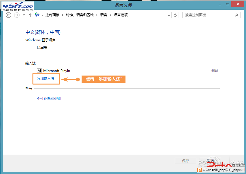 ![]() 3. 在“更改语言首选项”中选择“中文”后面的选项--“添加输入法”