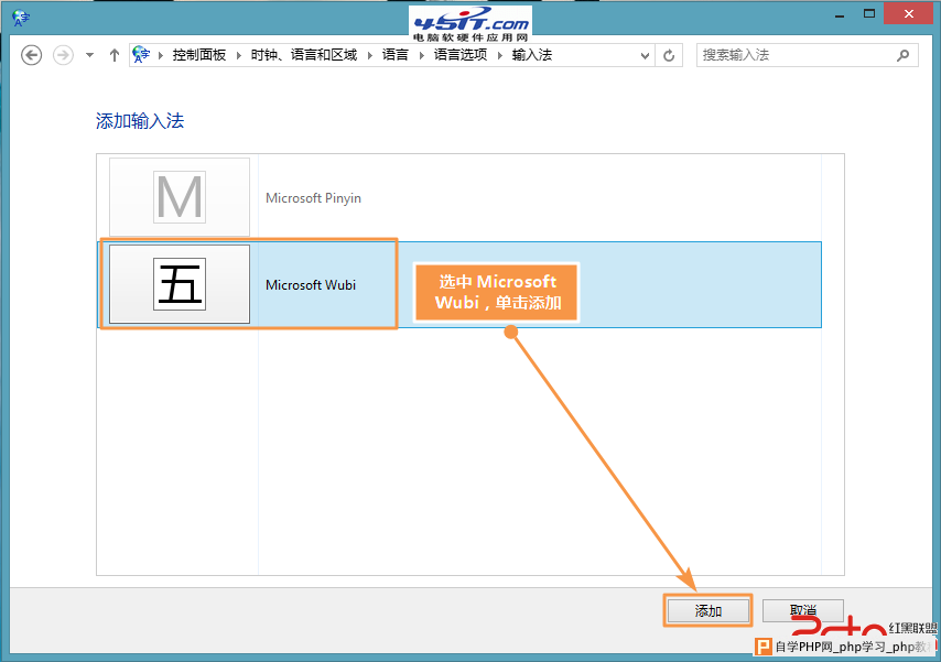 ![]() 4. 选中Microsoft Wubi,点击添加5. 如果确认不使用拼音输入法的话,可以删除拼音输入法。点击删除即可。