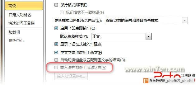 我们同样可以在Outlook 2010中取消该选项,以便启动Outlook后自动加载系统默认中文输入法。