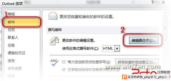 我们切换到“邮件”,在“编辑邮件”中点击“编辑器选项”