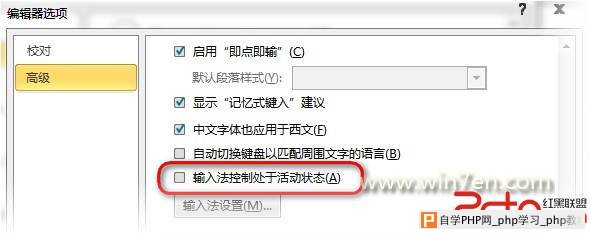 ![]() 3. 在“编辑器选项”中的“高级”下,既可以取消“输入法控制处于活动状态”,如下图: