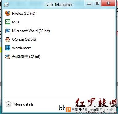 对比之下,可以看出,新版本的任务管理器更加简洁,后台运行的程序也可以显示出来(如Metro的墓碑程序,后台运行的某词典,验证客户端等),这些在传统的任务管理器中,在应用程序标签下是看不到的。而一些系统程序(如Windows资源管理器,我的电脑等)在新体验的任务管理器中是不能直接看到的。 www.2cto.com