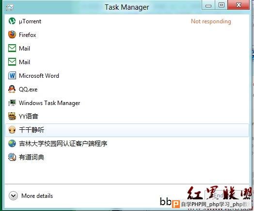 ![]() 当有程序无响应时,新版本的管理器给出了红色的显眼标识,在一片空白中更加醒目。