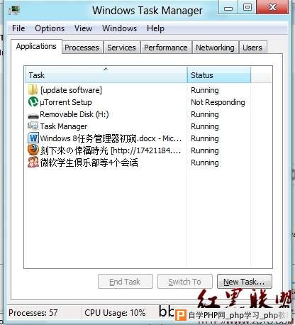 [导读] Windows 8任务管理器初窥(一):打开任务管理器方式、简洁界面、与传统任务管理器对比、在线搜索引擎设置对于Windows用户来说,最不陌生的应该就是任务管理器了。遇到程序卡死的时...
