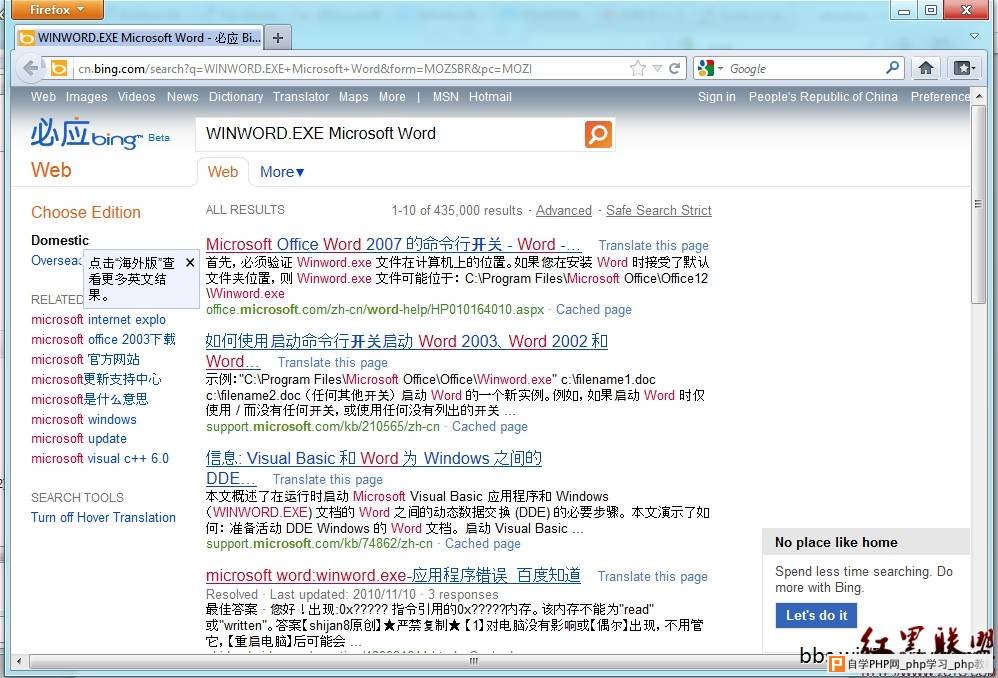 ![]() 再次在任务栏中点击“Searchonline”发现使用的搜索引擎已经改变成Bing了。