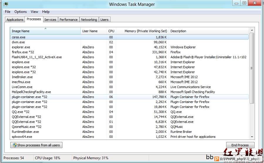 此外,在新版的任务管理器Processes标签下面,给出了更多的详细内容。如下图: