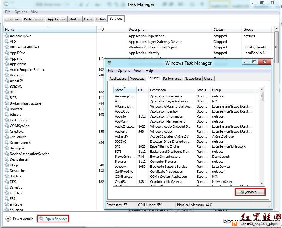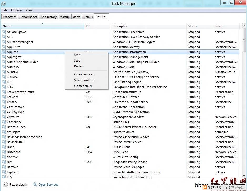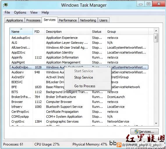 新版本的任务管理器中,展开“More Detail”后功能比传统的任务管理器更加强大。主要特点是对应用程序、后台进程和系统进程分组管理,“明文”显示进程并根据程序分组,高亮耗费资源的进程,同时在进程中添加了磁盘和网络的监视,更加方便。服务标签没有很大的变化,主要优势在于右键可以直接搜索相关服务。 www.2cto.com