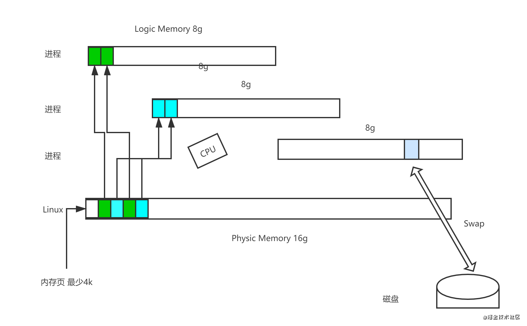 众所周知,Java进程在启动的时候我们可以通过 -Xms 和-Xmx来设置内存的上限和下限。直到我发现使用top命令监控的Java进程在-Xms设置4g的情况下占用的内存并不是4g,这就产生了一个疑问Linux服务器的内存到底是如何进行分配的。 于是乎,我查阅了一些知乎,课程以及Linux相关的书籍。这里分享并记录的一下相关的知识。 在Linux上运行的进程不仅限于Java。都有一个概念,逻辑内存(Logic Memory),而物理机真是持有的内存,我们称为 物理内存(Physic Memory)。