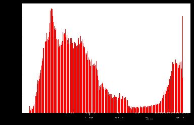 count[int(gray[i, j])] += 1 # 统计该像素出现的次数