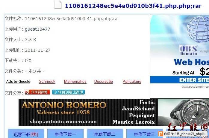 因为是PHP程序,所以服务器一定支持PHP,这程序后台限制了php.asp.aspx.php2.等一些脚本上传。但是可以上传1.php;rar.这样的程序,利用IIS6的解析漏洞。我们把PHP马改成1.php;rar,如果改成1.php;.rar就不行了,因为他会自动变名字的。1.php;rar他变名字但是.php;rar不会被变。上传后找路径。