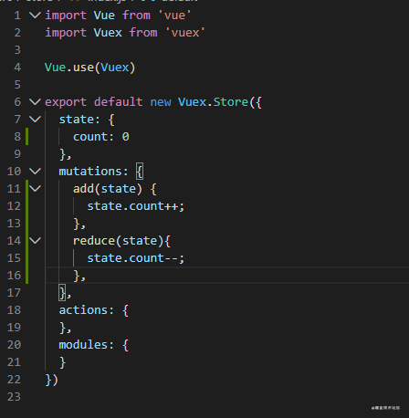 最后同样是在计算属性中使用它, 3.如何修改state中的数据 首先我们要知道,官网虽然说修改state中的数据唯一方法就是提交 mutation。但是我们也可以直接修改state中的数据,列如 言归正传,如何提交mutation了? 1.创建一个方法来提交mutation,比如最简单的点击事件触发某个方法,然后这个方法来提交mutation。 在vuex中提交mutation的方式就是使用 如果你觉得这样也麻烦,同样有辅助函数来帮助你,还是一样,先引入这个辅助函数