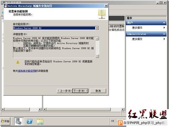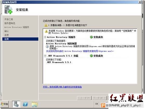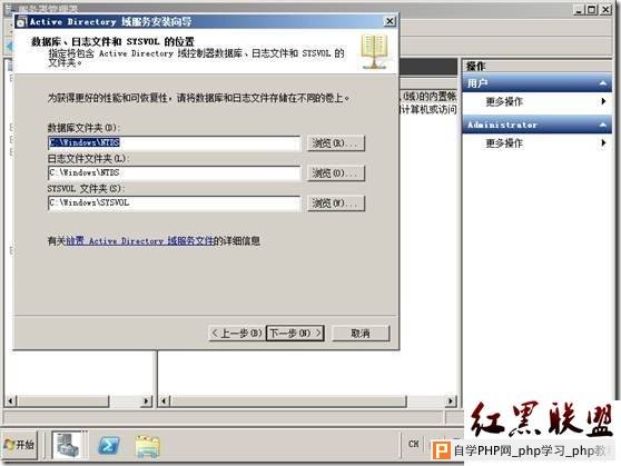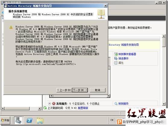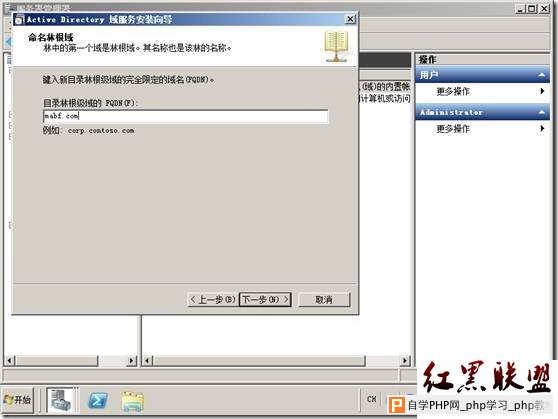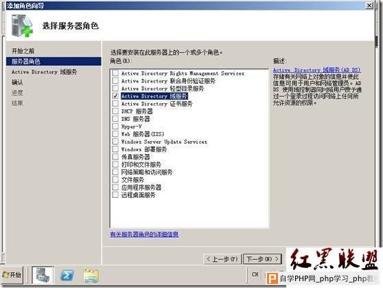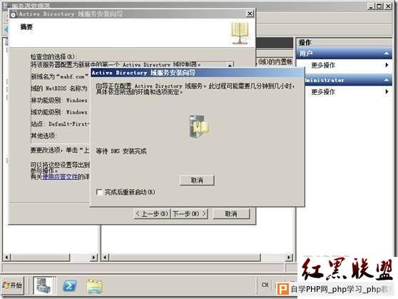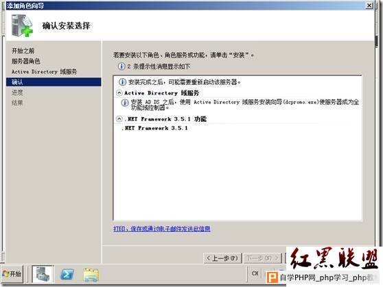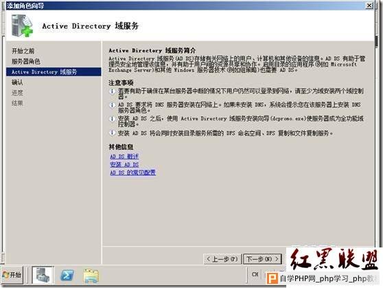 在新装的2008 r2系统中做域服务,要使用固定的IP地址。 更改计算机名称 在服务管理器中-添加角色 勾选Active Directory域服务 添加必要的功能 选择下一步 确认,选择安装 安装成功。 运行域服务安装向导 下一步 在新林中新建域 输入域名 选择域的版本 为此域添加DNS服务 数据库和文件、日志等的存放位置,下一步确定安装配置 开始安装配置DNS和域 完成后必须重启电脑