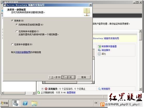了解了vmware view的各个组建和部署环境,首先要为部署vmware view创造环境,安装vmware view的2个条件,域环境和vsphere环境。域环境是今后在搭建vmware view的必要组建,也是在管理桌面必不可少的一个方法。这里不做vsphere环境的搭建,之前博客(mabofeng.blog.51to.com)有发过,所以这里主将介绍域环境的搭建。 搭建与环境,建议使用windows 2008 R2.首先先建立一个虚拟机来搭建AD。如果公司现有域环境,建议将虚拟桌面单独作为一个域或者子域,将公司的现有域进行升级。因为在转换虚拟化方面需要时间和合理的过度。