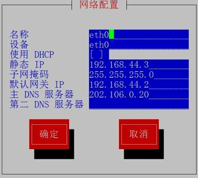 输入正确的 IP 地址后,使用 Tab 键切换至"确定"按钮上,接下来一路保存退出,IP 地址就输入完成了。