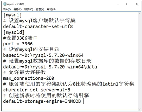 basedir = D:\mysql-5.7.20-winx64\ datadir = D:\mysql-5.7.20-winx64\data port =3306