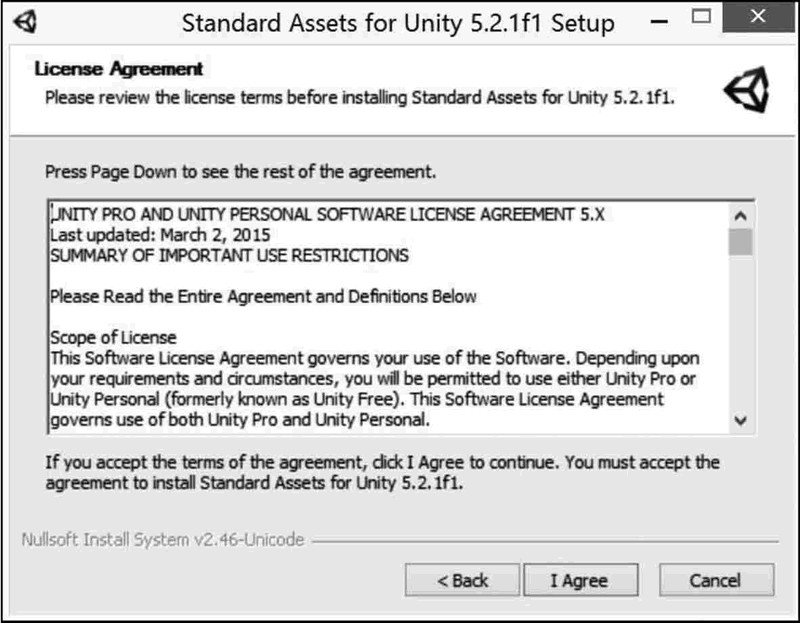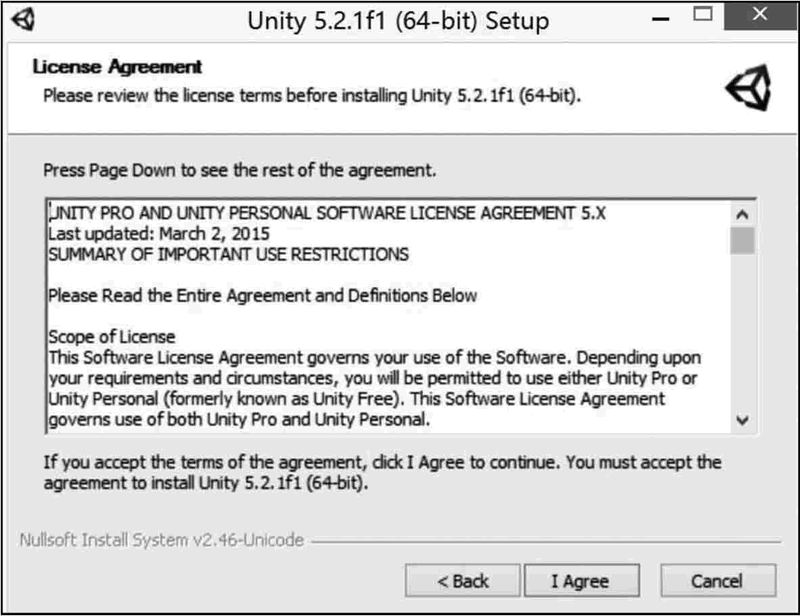 Unity 5.x 软件的下载与安装十分便捷,游戏开发者可根据个人计算机的类型有选择地安装基于 Windows 平台或 MacOS X 平台的 Unity 3D 软件。