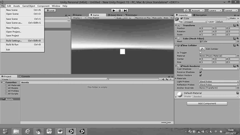 步骤 1):打开要发布的 Unity 3D 工程,执行 File→Build Settings 菜单命令,如下图所示。