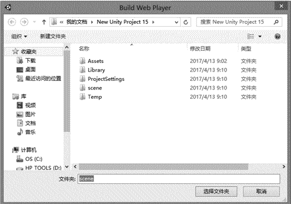 步骤 3):平台启动成功后,单击 Build(发布)按钮,发布 Web 文件,由于发布的是两个文件,所以需要创建一个文件夹,本案例将其命名为 scene,如下图所示。