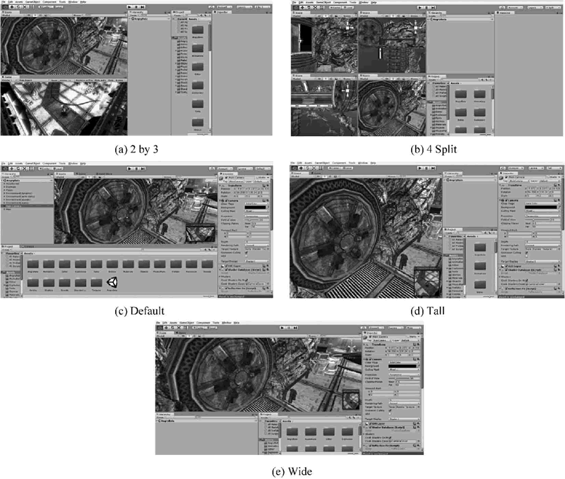 右上角 Layouts 按钮用于改变视图模式,单击 Layouts 选项,可以在下拉列表中看到很多种视图,其中有2 by 3、4 Split、Default、Tall、Wide等,如下图所示。