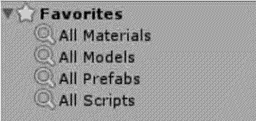 Project 视图左侧显示当前文件夹的层次结构,当选中一个文件夹时,它的内容就会显示在右侧。对于显示的资源,可以从其图标看出它的类型,如脚本、材质、子文件夹等。可以使用视图底部的滑块调节图标的显示尺寸,当滑块移动到最左边时,资源就会以层次列的形式显示出来。当进行搜索时,滑块左边的空间就会显示资源的完整路径。