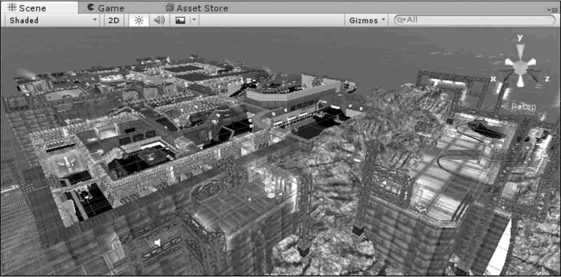 Unity 3D 的 Scene 视图是交互式沙盒,是对游戏对象进行编辑的可视化区域,游戏开发者创建游戏时所用的模型、灯光、相机、材质、音频等内容都将显示在该视图中。