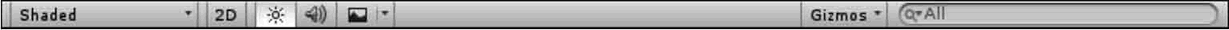 如下图所示,Scene 视图上部是控制栏,用于改变相机查看场景的方式。
