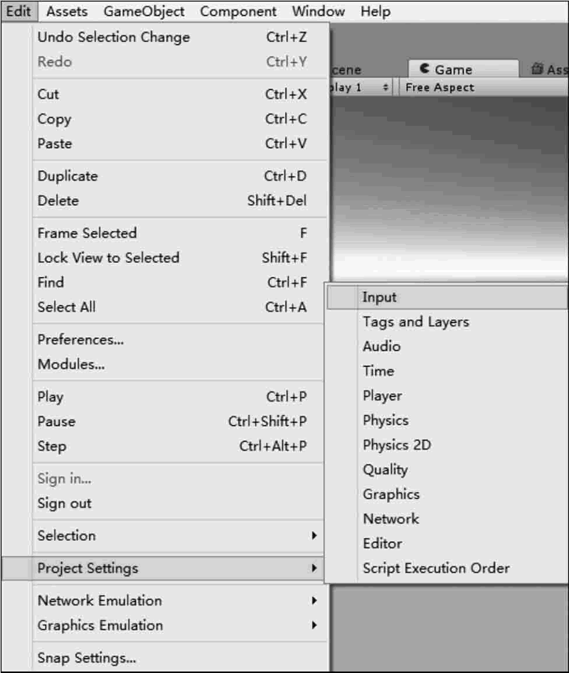 执行 Edit→Project Settings→Input(输入)菜单命令,即可修改映射到水平方向和垂直方向的名称和快捷键,如下图所示。