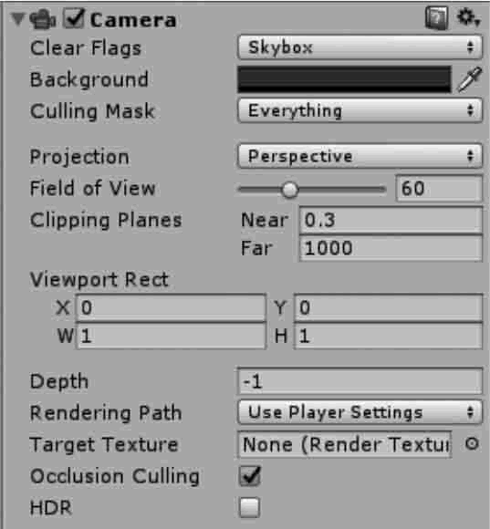 | Clipping Planes | 裁剪面 | 摄像机从开始到结束渲染的距离 |