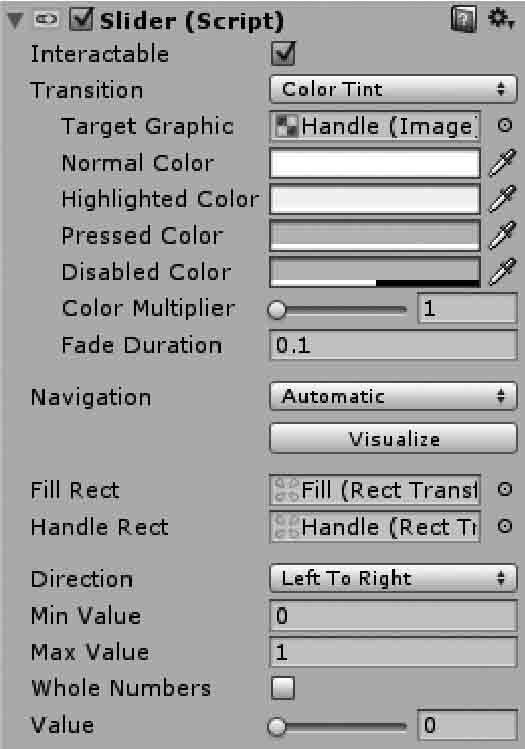 除此以外,Slider 控件也可以挂载脚本,用来响应事件监听。