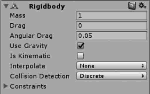 刚体使物体像现实方式一样运动,任何物体想要受重力影响,都必须包含一个刚体组件。利用刚体类游戏组件,遵循万有引力定律,在重力作用下,物体会自由落下。