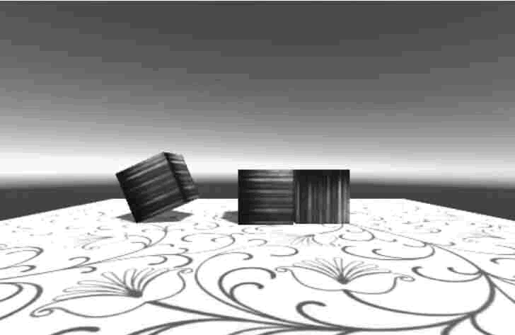 步骤 4):美化场景。采用纹理贴图的方法将地面和立方体都贴上纹理。