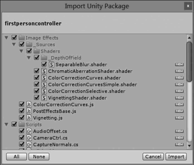 步骤 6):选中第一人称资源后单击 Import 按钮导入该资源,如下图所示。