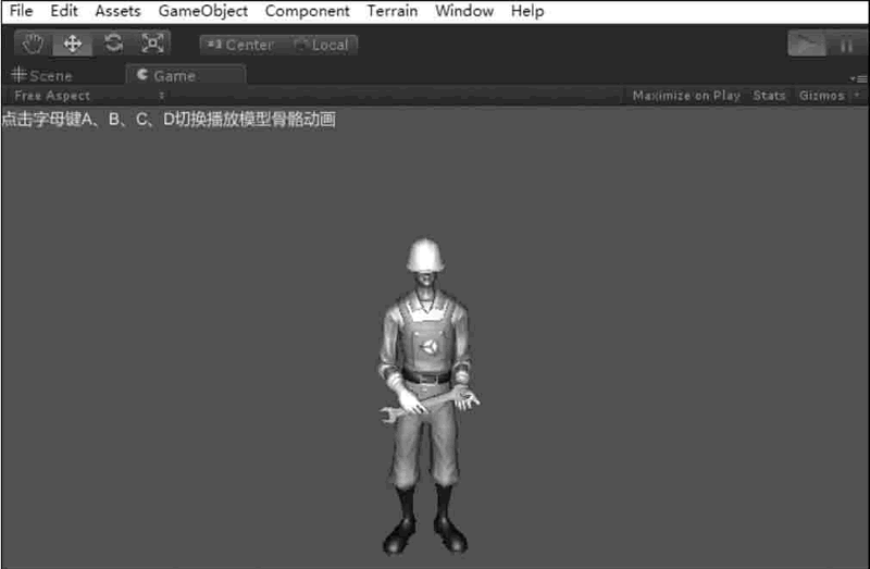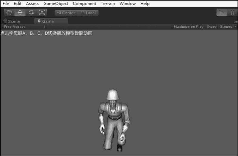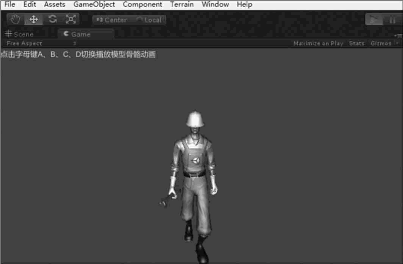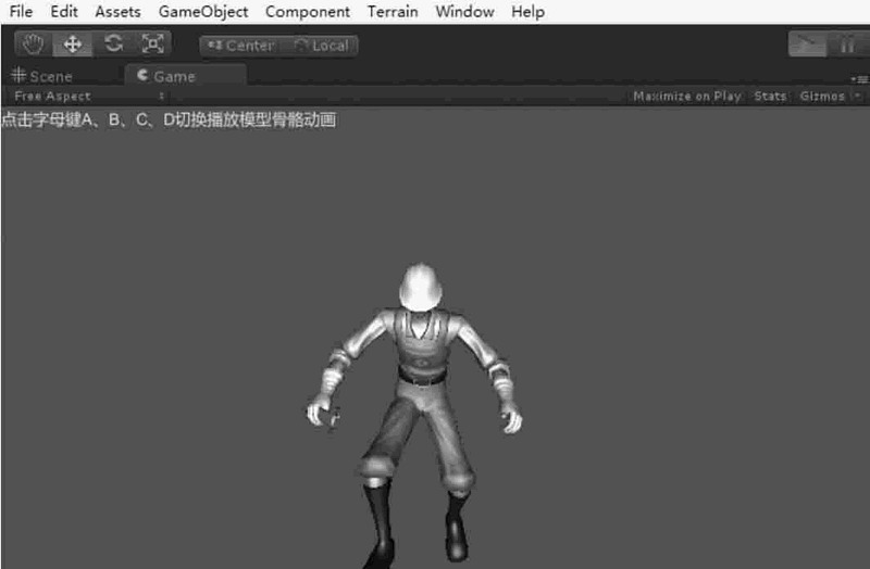 GUILayout.Label("按字母键A、B、C、D切换播放模型骨骼动画");