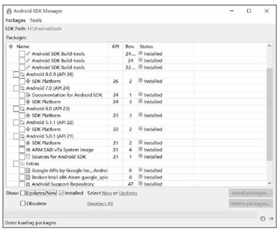 通过 SDK 管理器可以查看本机已经安装的 Android SDK 版本,如图 4 所示。