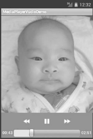 实例 MediaPlayerVideoDemo 演示了使用 SurfaceView 和 MediaPlayer 组件播放视频的方法,运行效果如图 2 所示。