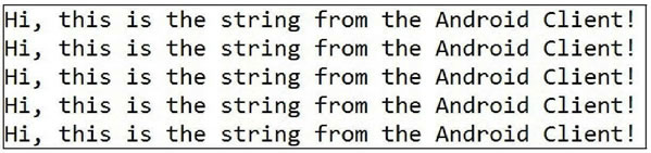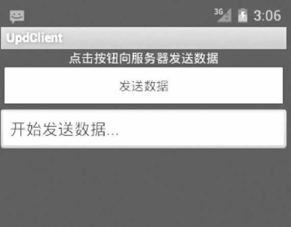 下面我们编写一个由 Android 手机客户端向 PC 服务器端发送信息的小程序,客户端详细代码记录在实例 SocketClientDemo 中,服务器端由纯 Java 开发,详细代码在实例 SocketServerDemo 中,运行效果如图 1 所示。