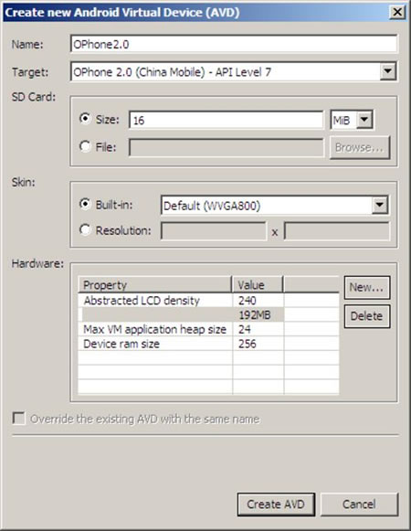 //得到当前时间的MyLocationOverlay对象 myLocation = new MyLocationOverlay(GPSLocationInMapDemoActivity.this, map); myLocation.enableMyLocation(); // 将当前位置添加到地图上 map.getOverlays().add(myLocation);至此,该实例开发完成。运行该实例需要支持 Google APIs 的 AVD,如图 4 所示。若没有,则可以通过 AVD Manager 创建一个。