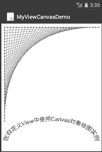 实例 MyViewCanvasDemo 没有使用布局文件,而是将自定义的 MyView 对象显示出来。主 Activity MyViewCanvasDemoActivity 的代码如下: