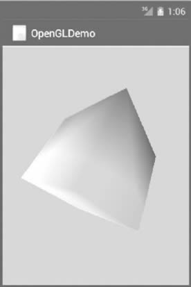 实例 OpenGLDemo 演示了在 Activity 中使用 GLSurfaceView 和 GLSurfaceView.Renderer 合作绘制三维图形的过程。