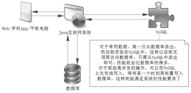 一方面,使用 NoSQL 从数据库中读取数据进行缓存,就可以从内存中读取数据了,而不像数据库一样读磁盘。现实是读操作远比写操作要多得多,所以缓存很多常用的数据,提高其命中率有助于整体性能的提高,并且能减缓数据库的压力,对互联网系统架构是十分有利的。