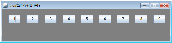 创建一个窗口,设置标题为“Java第四个GUI程序”。使用 FlowLayout 类对窗口进行布局,向容器内添加 9 个按钮,并设置横向和纵向的间隔都为 20 像素。具体实现代码如下: