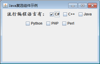 JCheckBox chkbox6=new JCheckBox("Perl"); //创建指定文本的复选框