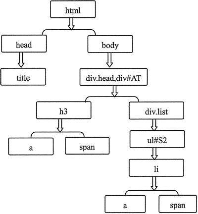 html, body{ font-size: 16px},则页面所有元素都将继承根元素、父元素的字体大小设置,而编写的基本标记选择器、类别选择器、ID 选择器以及复合选择器都是根据 HTML 结构进行编写,尤其是复合选择器中前后标记的位置就是实际 HTML 结构,即下面的树形图,如图 2 所示。